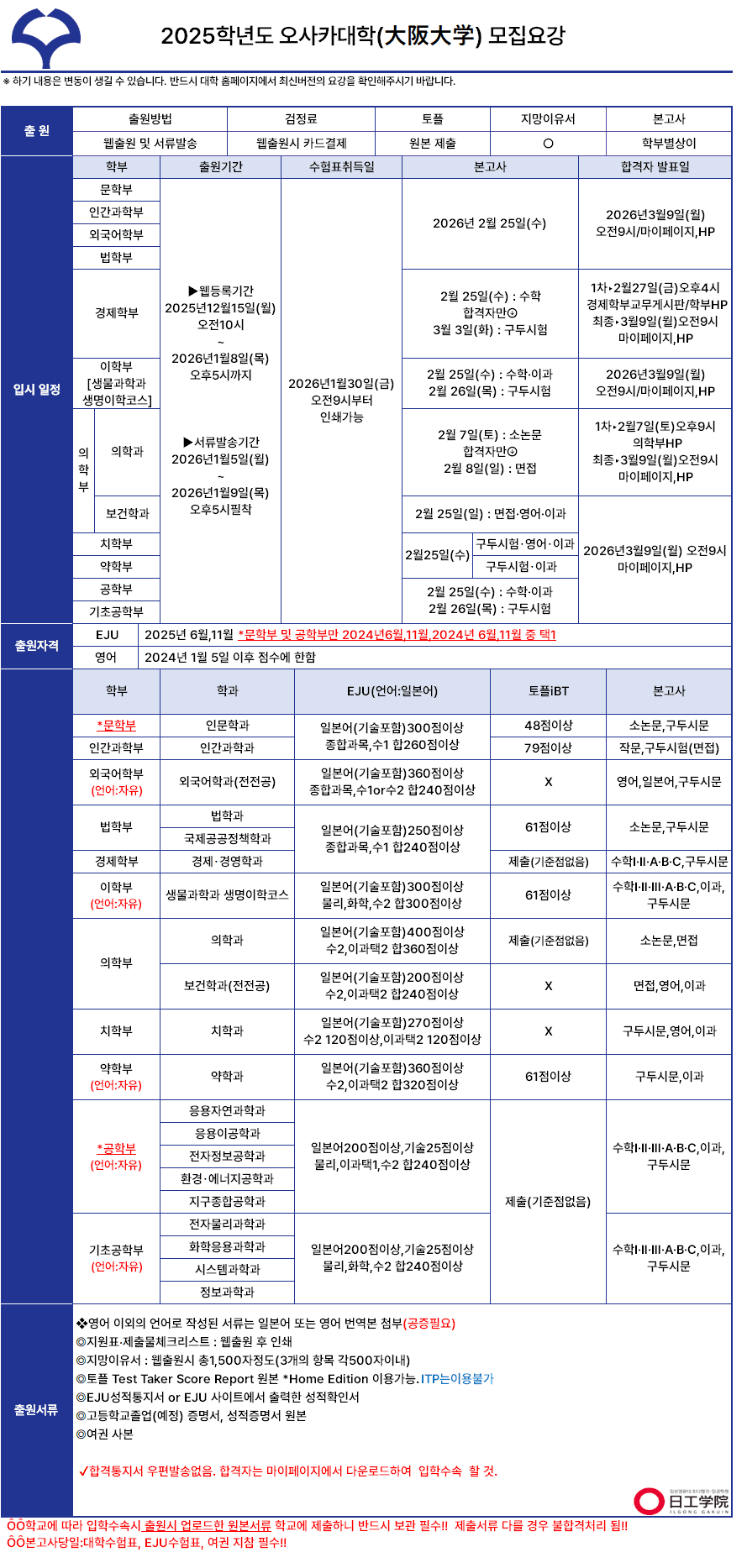[국립] 2026학년도 오사카대학 모집요강