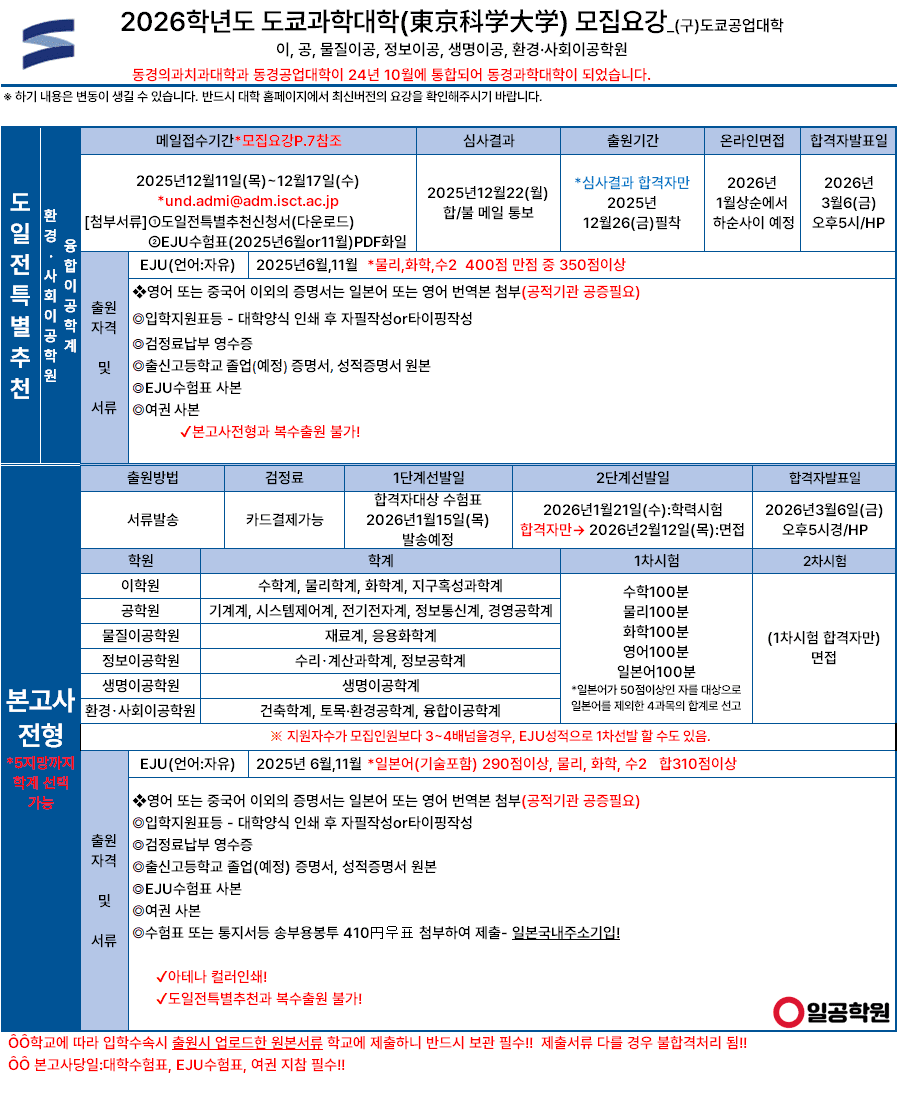 [국립] 2026학년도 도쿄과학대학 모집요강_의,치학부 외 나머지 학부
