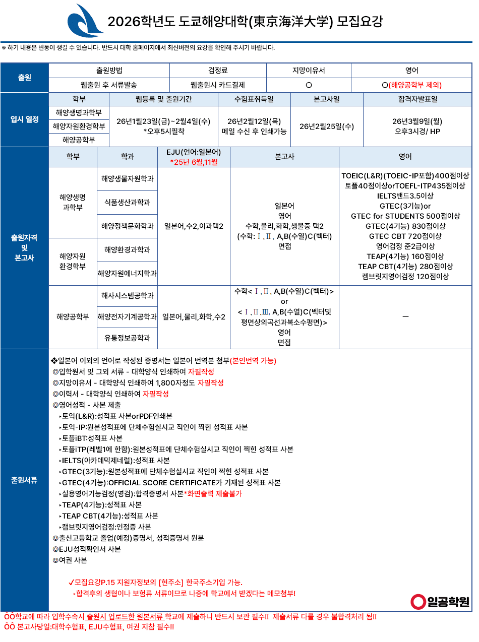 [국립] 20206학년도 도쿄해양대학 모집요강