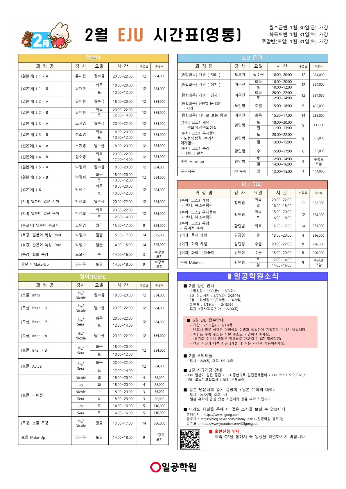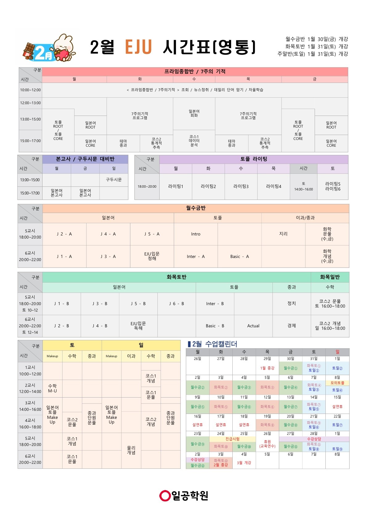 [EJU] 26년 2월 영통캠퍼스 시간표
