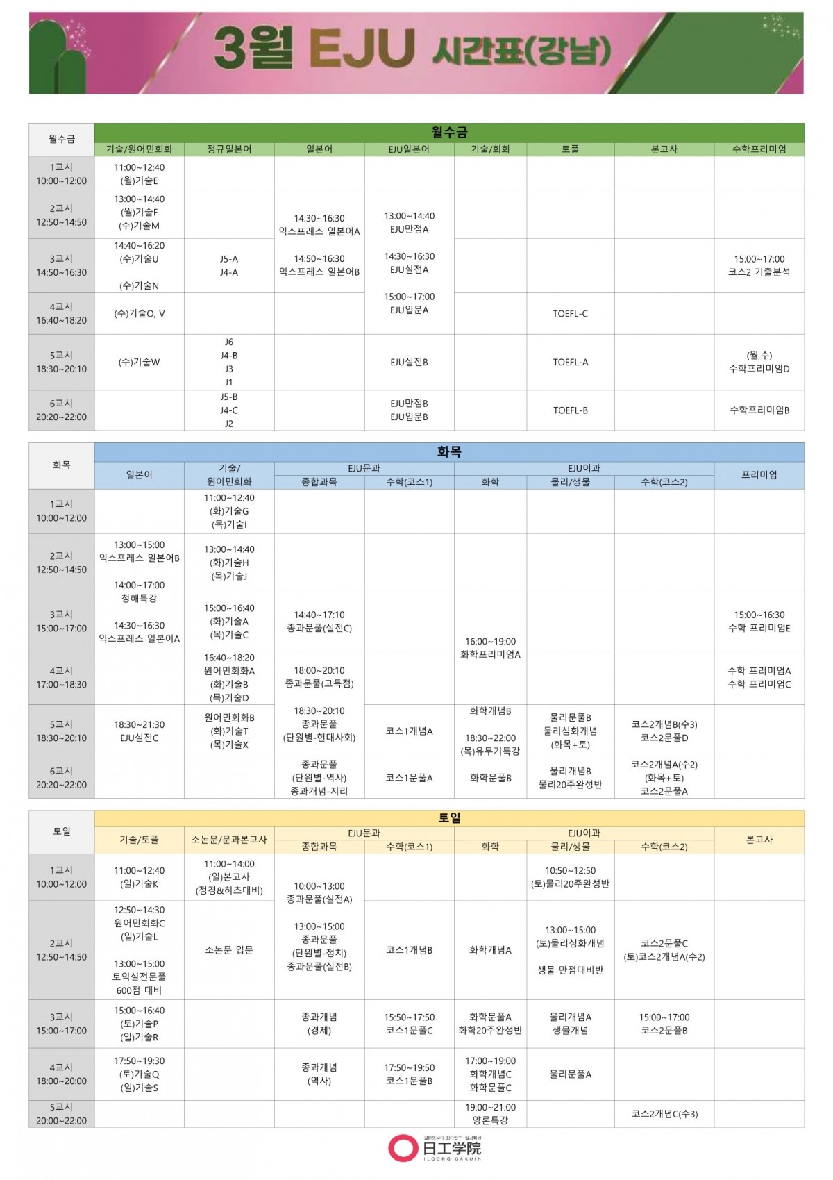 [EJU] 26년 3월 강남캠퍼스 시간표