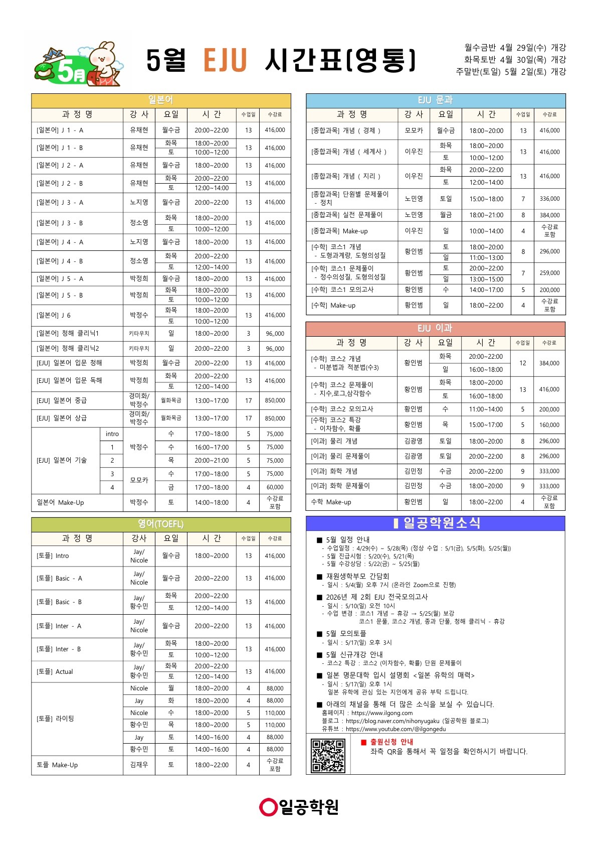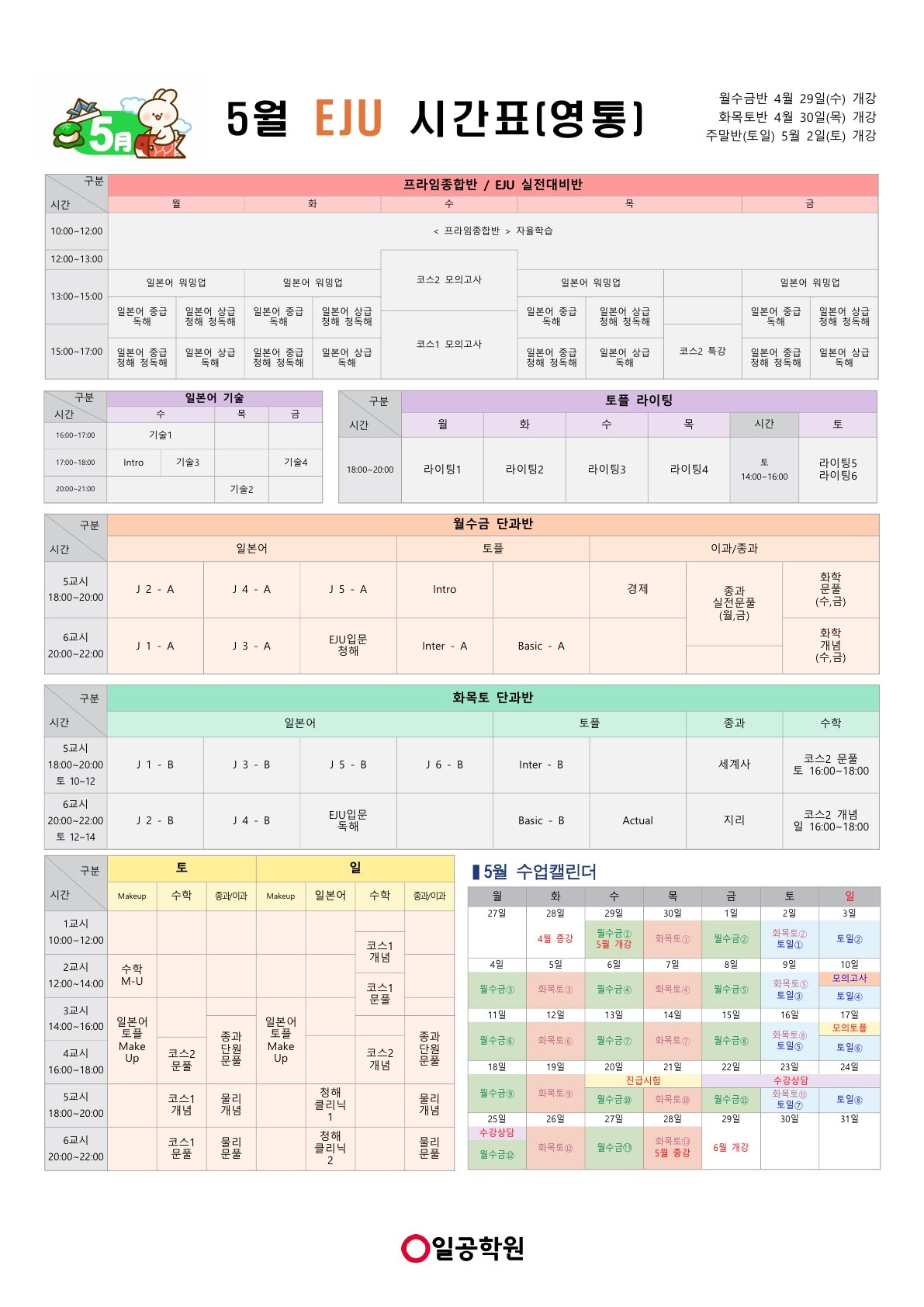 [EJU] 26년 5월 영통캠퍼스 시간표